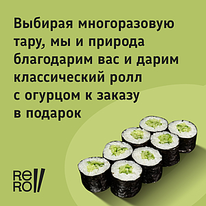 Дарим классический ролл с огурцом при заказе в многоразовой таре